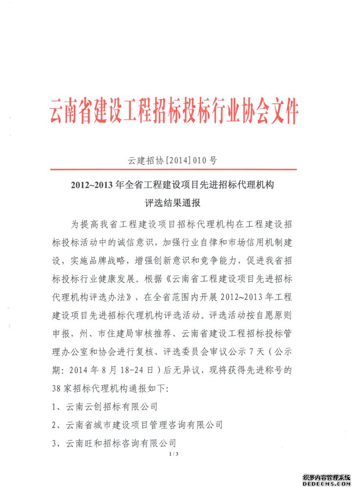 云南尊龙凯时人生就是博招标咨询有限公司连续三年获得云南省建设工程招标投标行业协会评选的“云南省工程建设项目先进招标代理”。